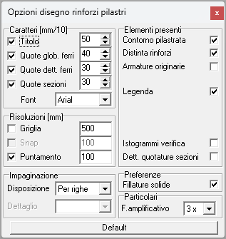 Il foglio si apre scegliendo l’opzione di menù Edit|Rinforzi|Pilastrate.
