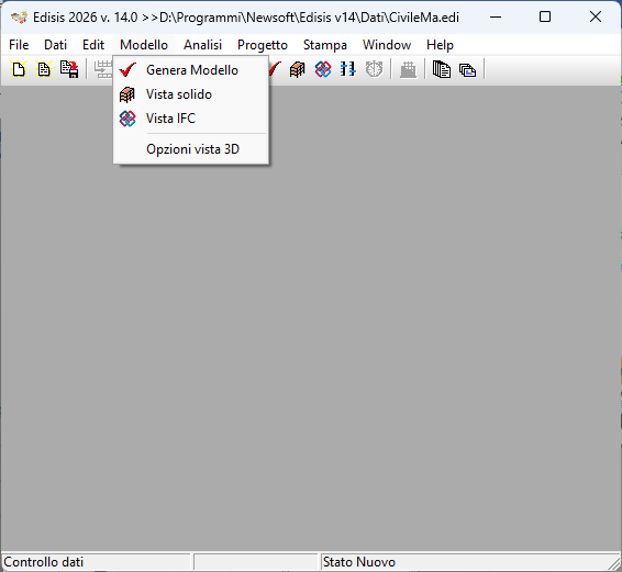 Il menù modello raggruppa alcune funzioni relative alla costruzione e all’esame del modello strutturale. In particolare le voci del menù comprendono: