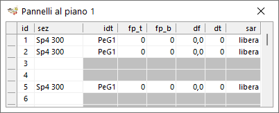 Si sceglierà la sezione tipo da assegnare al pannello, come definite nel foglio Sezioni Parete. L'assenza del pannello al piano considerato si consegue assegnandole la sezione nulla.