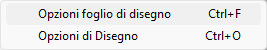 Le opzioni del disegno sono accessibili dal popup menù che compare, come già detto, cliccando con il tasto destro del mouse sull’area di disegno o dalla tastiera mediante i tasti <CTRL>+<O>.