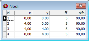 - Vi si assegnano le coordinate ed altri valori caratteristici dei nodi di incrocio, cioè di quei punti in cui si trova l’estremità di un pannello o la posizione di un pilastro.
