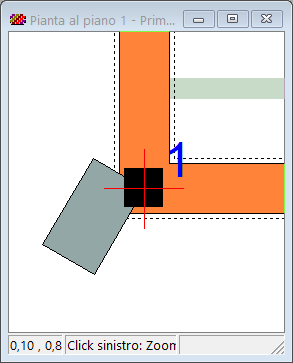 - Se il nodo, al termine dello spostamento ricade su un altro nodo, uno dei due è assorbito dall’altro. Questa funzione è molto utile quando un muro, per un errore di inserimento, risulti suddiviso in due pannelli separati da un nodo intermedio. In questo caso basta spostare il nodo intermedio su uno dei due nodi di estremo per ricostituire la monoliticità del muro.