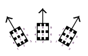 In particolare viene identificata sulla sezione del pilastro una posizione mediante un numero da 1 a 9, secondo la topologia del tastierino numerico della tastiera ruotato nella direzione di orientazione del pilastro (ovvero secondo l'angolo alfa che si assegna alla colonna successiva). In figura si vedono le posizioni dei fili fissi al variare dell'orientazione del pilastro.