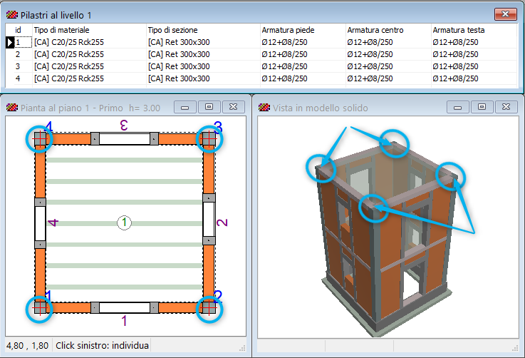 Nella versione V13 si ha la possibilità di introdurre nei nodi elementi di tipo pilastro, costituiti da materiale murario, in c.a. con relativa armatura, in acciaio e in legno.