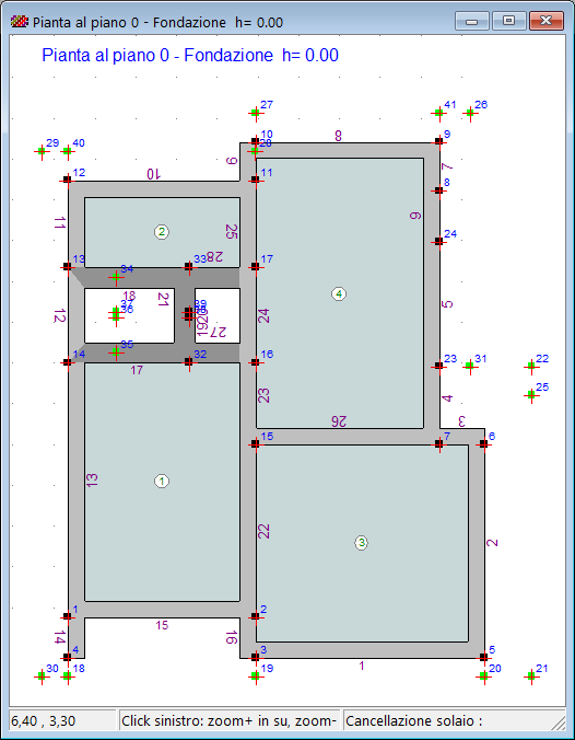 Vengono quindi creati gli elementi con la stessa modalità dei solai: in questo caso quattro platee al livello 0.