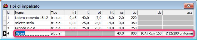 Per la definizione delle platee occorre definire un tipo di impalcato col tipo "plt c.a.".