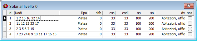 La platea si definisce sfruttando gli strumenti di input previsti per i solai, di cui costituisce un'estensione: in particolare per ottenere una platea la tipologia di solaio dovrà essere esplicitamente dichiarata di tipo "platea", il solaio posizionato al livello zero o, in alternativa, avere tutti di pannelli del contorno di tipo fondazione.