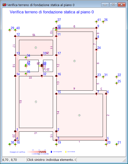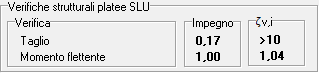 Per le verifiche sono attivi alert di avviso direttamente a video, per richiamare l'attenzione dell'utente su possibili casi di mancato soddisfacimento dei requisiti richiesti. In generale l'effetto delle platee è tenuto in conto nella valutazione del fattore di sicurezza per carichi statici, richiesto negli interventi su edifici esistenti ed espresso come rapporto fra il valore ζv,i fra il massimo sovraccarico variabile verticale sopportabile dalla costruzione e il valore del sovraccarico verticale variabile che si utilizzerebbe nel progetto di una nuova costruzione.