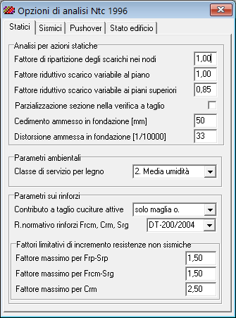 In questa sezione sono contenuti parametri relativi all'analisi per azioni statiche.